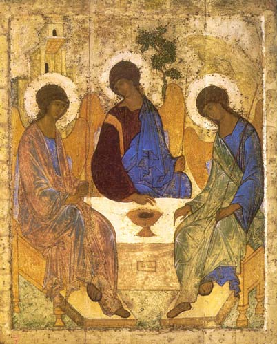 Today is the Feast of the Most Holy Trinity. How can one use any words to describe this mystery. The icon above is considered the pre-eminent icon in the Eastern Church written by Rublev to depict the Holy Trinity. It is based on the visit of the three angels to Abraham. You can read more about it here (which ends with a short meditation by Henri Nouwen).