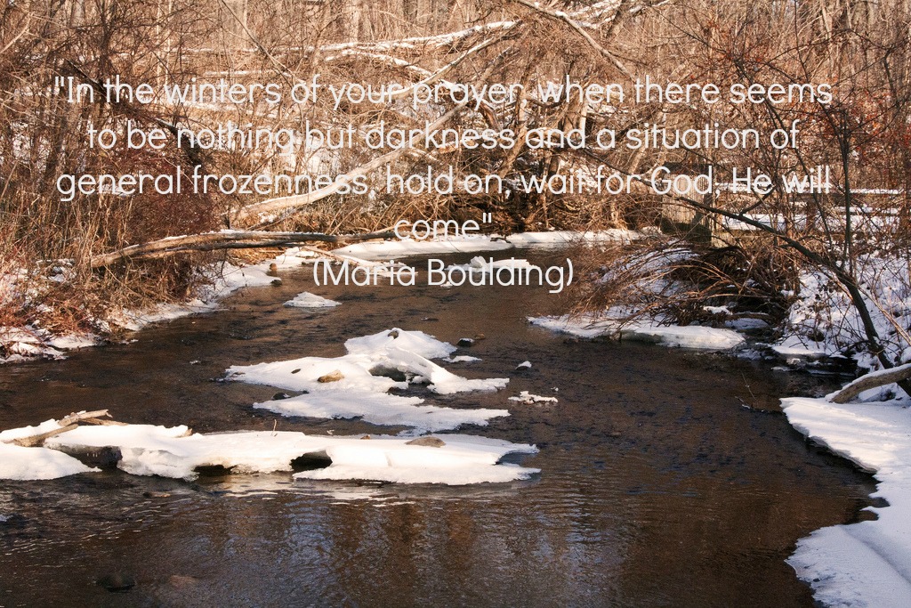 1. When it seems like the winter of prayer is endless one wonders if one is doing something wrong? There are times when faith seems like an acct of lunacy, yet one knows there is no other way. I would like God to give me a hug and say ” stop worrying. It will all be alright in the end!”