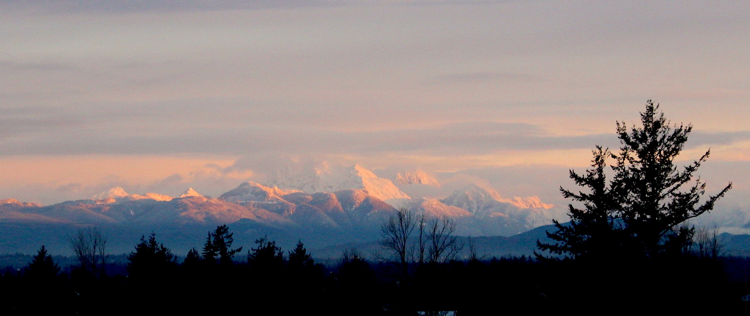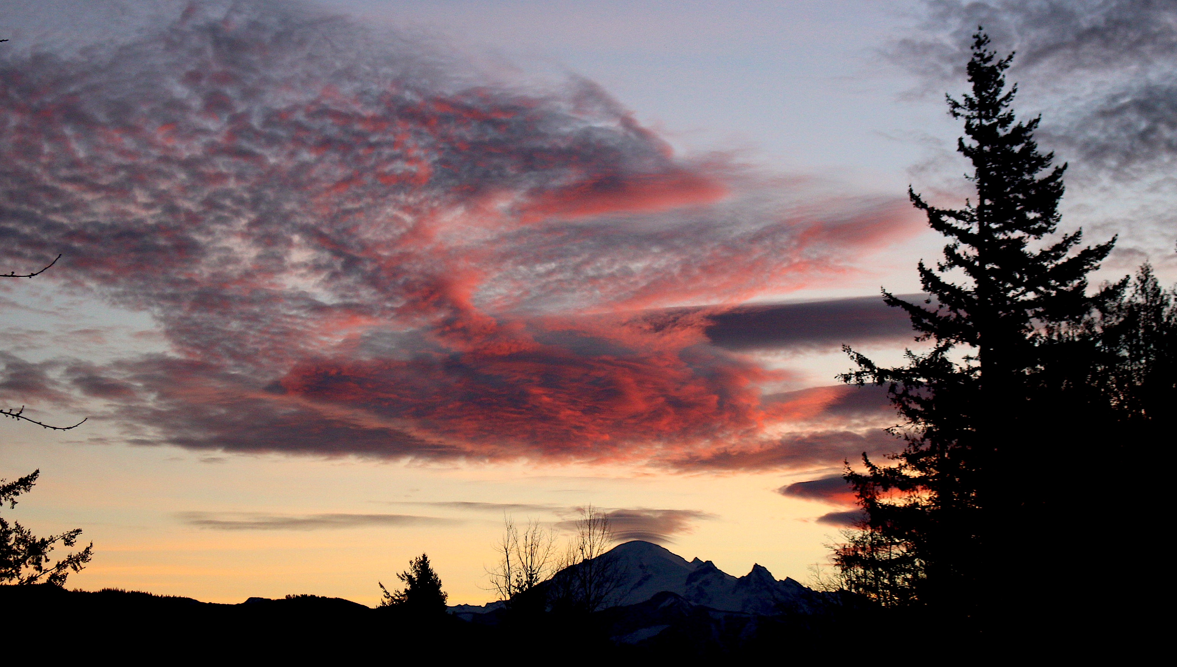photo by Josh Scholten – dawn from the top of Mt. Baker, seeing its shadow to the west