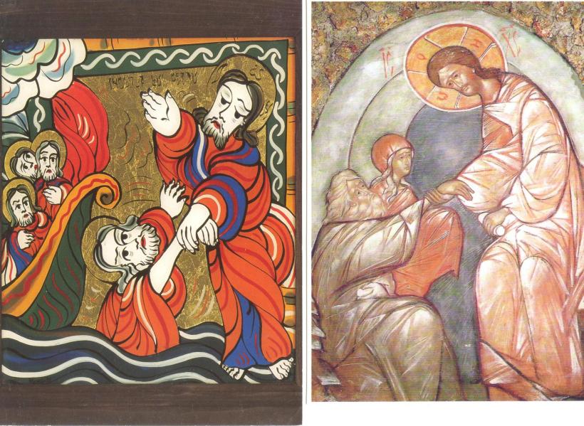 The one on the left is obviously of Jesus rescuing Peter as he sank beneath the waves. The one on the right may not be as obvious. This is an icon of Jesus’ descent into hell when He goes to release Adam and Eve. Did you notice in both how Jesus reaches out His hand in both situations to grasp the hand of the other? That is a window into His Heart for each of us. He is always reaching out His hand to each of us in our need, to strongly grasp ours as we reach out for Him.